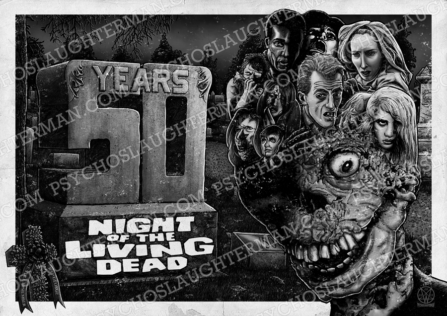 Limited edition Print celebrating the 50th Anniversary of George A. Romero's ground breaking masterpiece Night of the Living Dead. by William Anderson The PsychoSlaughterman