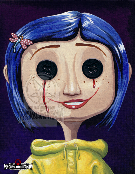 Looks like Poor lil Coraline didn't get away from the Other Mother after all as she now finds Herself sporting a nice new set of Shiny Buttons.