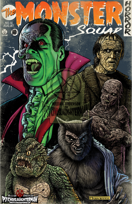 The Monsters from the cult classic film Monster Squad collected in a Vintage Tales From the Crypt style Horror comic cover.