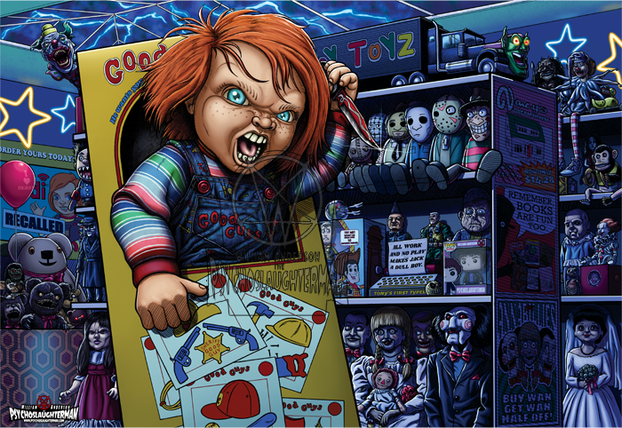 Playland, The Toy Store from Child's Play featuring Chucky himself along with a few others you may recognise from a variety of other Horror Films, Games and Toys.
